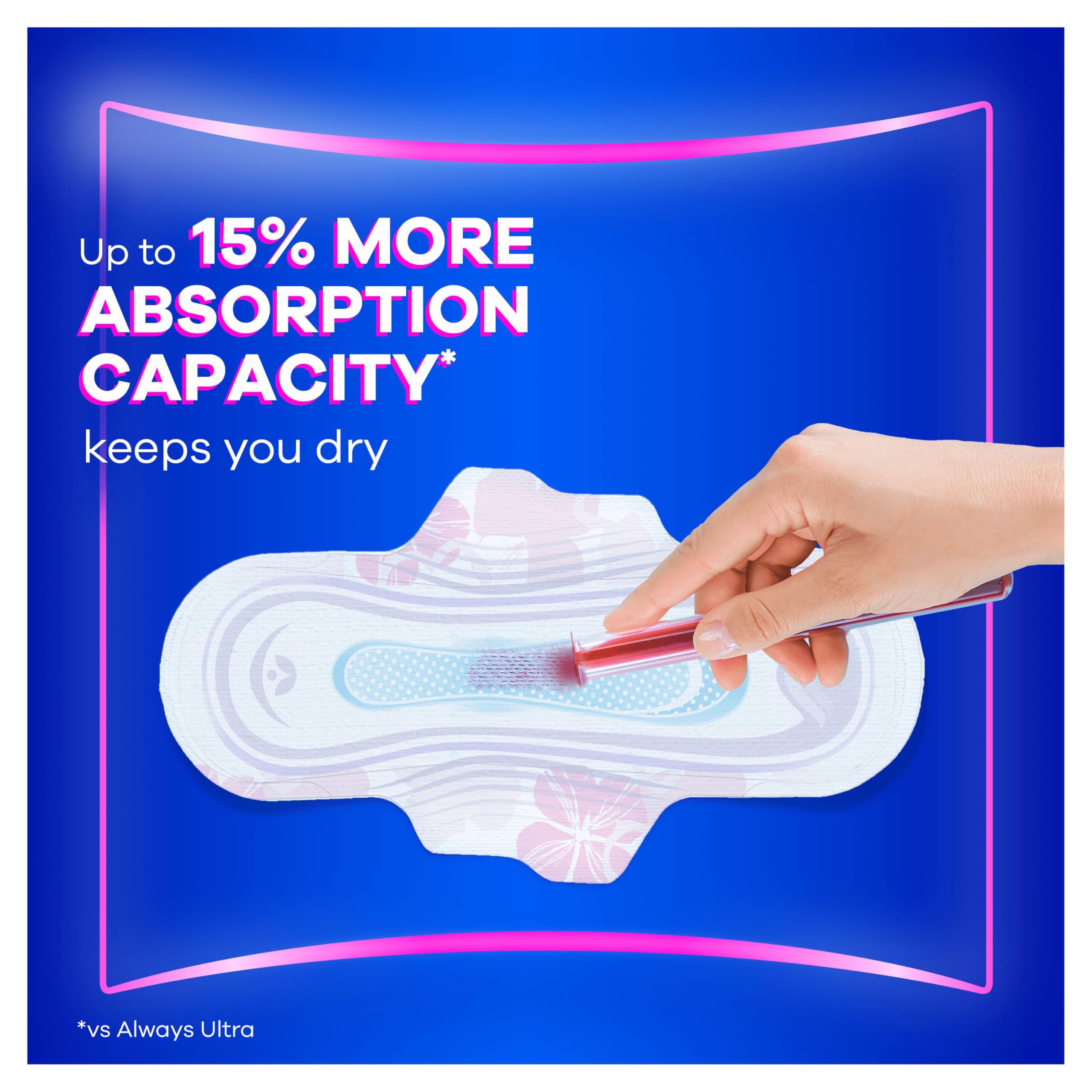 Sanitary Towels with ultra soft protective top layer for incredible comfort and leakage protection. ComfortLock wings, designed for great fit that fits any type of underwear. Soft & flexible design that adapts to your body. OdourLock technology with pleasant odour neutralising fragrance (contains none of the EU 26 allergens). Always Platinum pads with ultra soft & protective top layer are designed to prevent leaks, stay in place and provide optimal comfort. With Always Platinum pads, your period is the last thing on your mind. Always Platinum Long Plus (size 3) With Wings is recommended for day usage if you have moderate to heavy flow. Try Always Platinum Secure Night Extra (size 5), Always Platinum’s longest and largest pads for night time protection. Visit always.co.uk