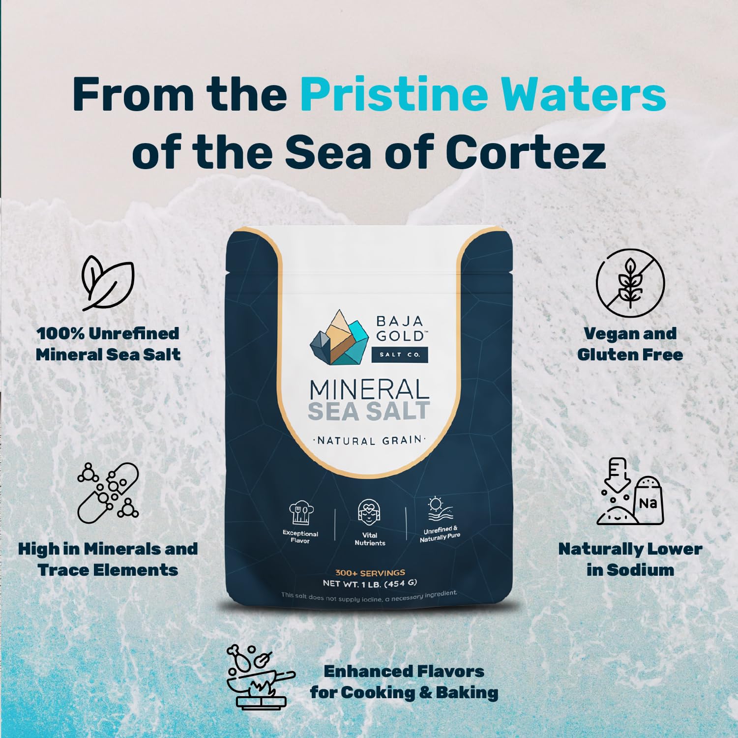 Baja Gold Mineral Sea Salt – Unrefined Mineral-Rich Sea Salt, 454g –Natural Grain Crystals packed with Trace Minerals, Ideal for Gourmet Cooking, Healthy Eating, and Versatile Applications