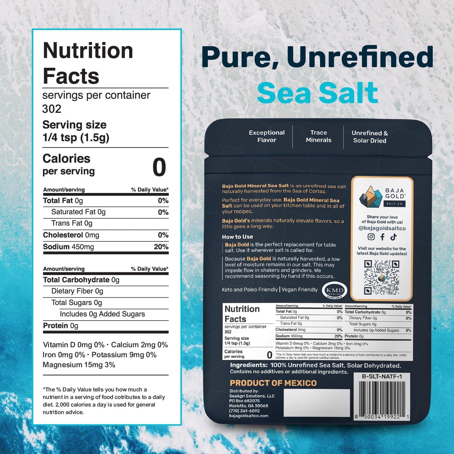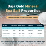 - Unrefined Premium Quality – Baja Gold Mineral Sea Salt is harvested from the pristine waters of the Sea of Cortez in California. Completely unrefined and naturally rich in over 90 trace elements not found in regular table salt. Experience the purity and quality of this exceptional salt
