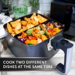 - EASY TO CLEAN, SAFE TO USE: Detachable air frying basket and divider are dishwasher-safe; Auto Shut-Off safety feature offers peace of mind; includes instruction book with air fryer recipes