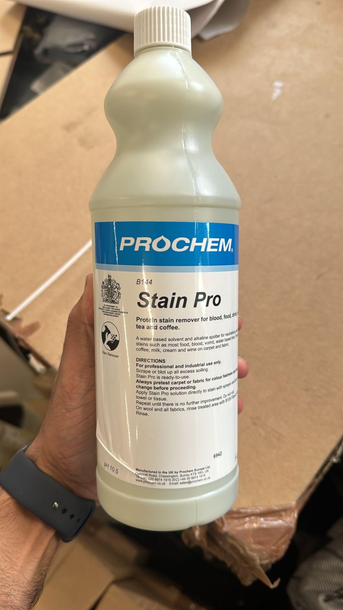 Item model number 5060970070415 Age Range Description Adult Item dimensions L x W x H 10 x 3 x 3 centimetres Number of items 1 Format Liquid Item form Liquid Product Dimensions 10 x 3 x 3 cm; 1 Kilograms Unit count 1000.0 millilitre Item weight 1 Kilograms Units 1000.0 millilitre Brand Prochem Skin type All Liquid volume 1000 Millilitres Scent Fresh Specific uses for product Stain Remover Manufacturer Prochems
