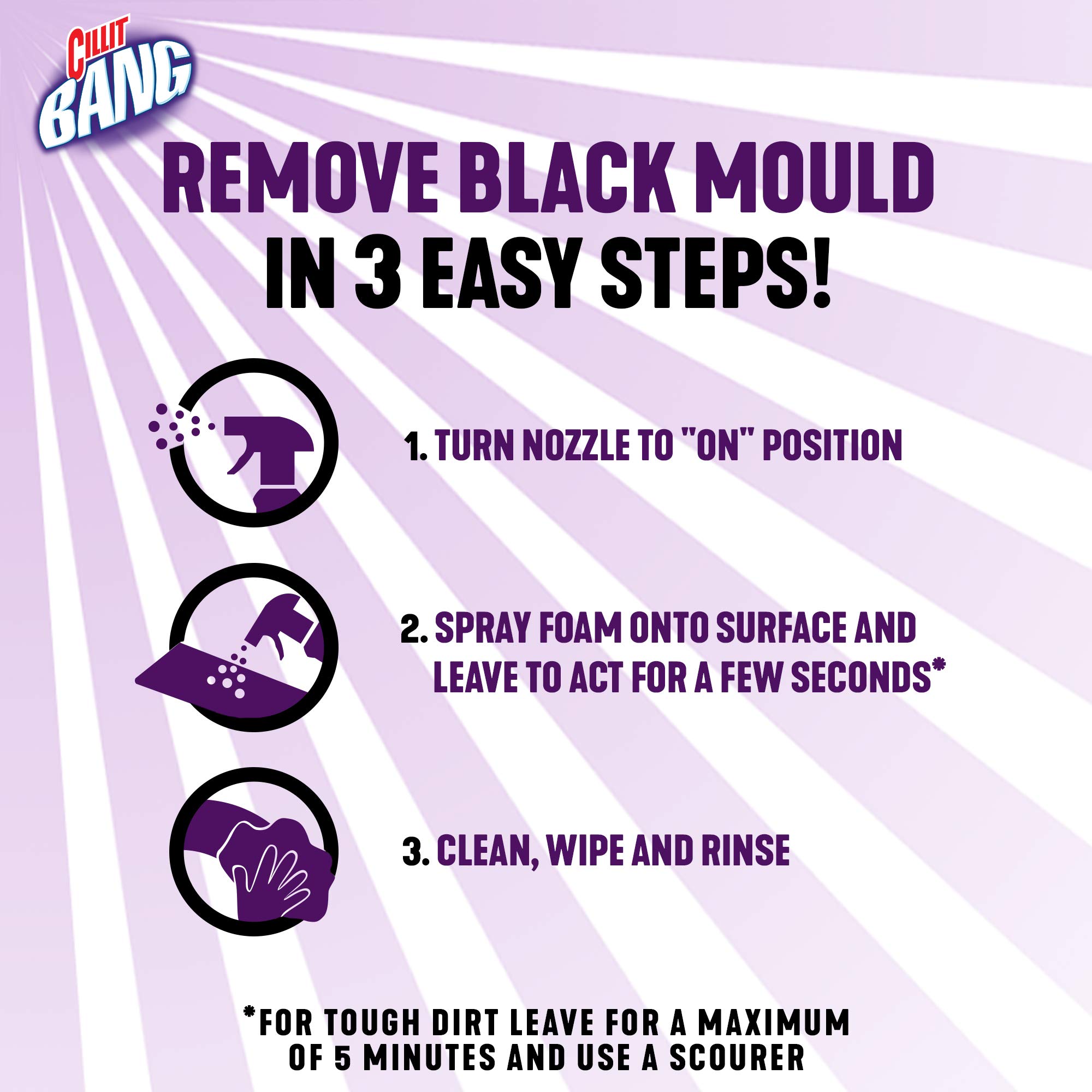 - Removes Mould and Mildew: Cillit Bang Black Mould Remover Spray has a powerful formula that removes black mould, mildew and dirt stains from your shower, bathtub or any damp surface in your home