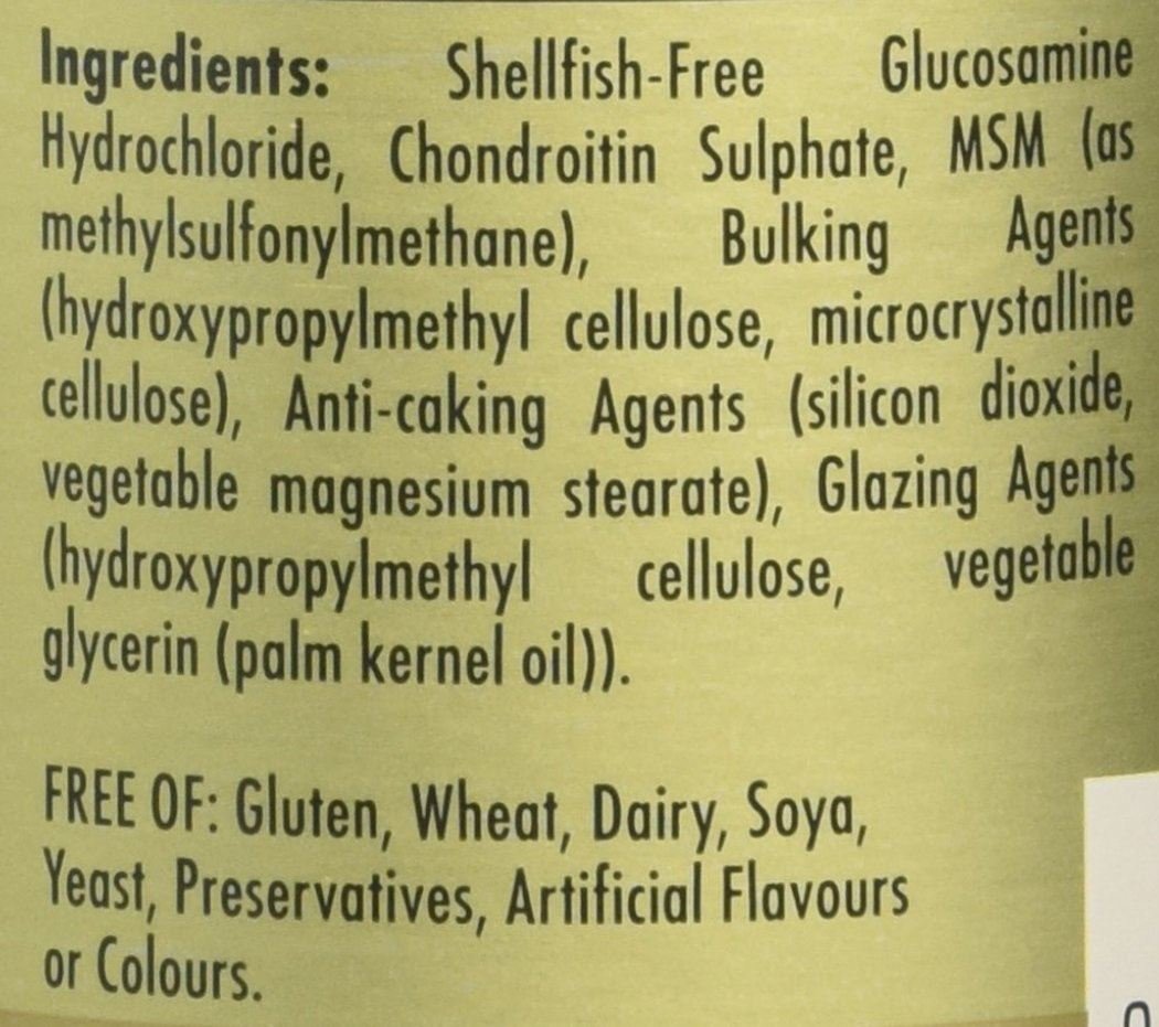 • Contains key ingredients; glucosamine, chondroitin and MSM