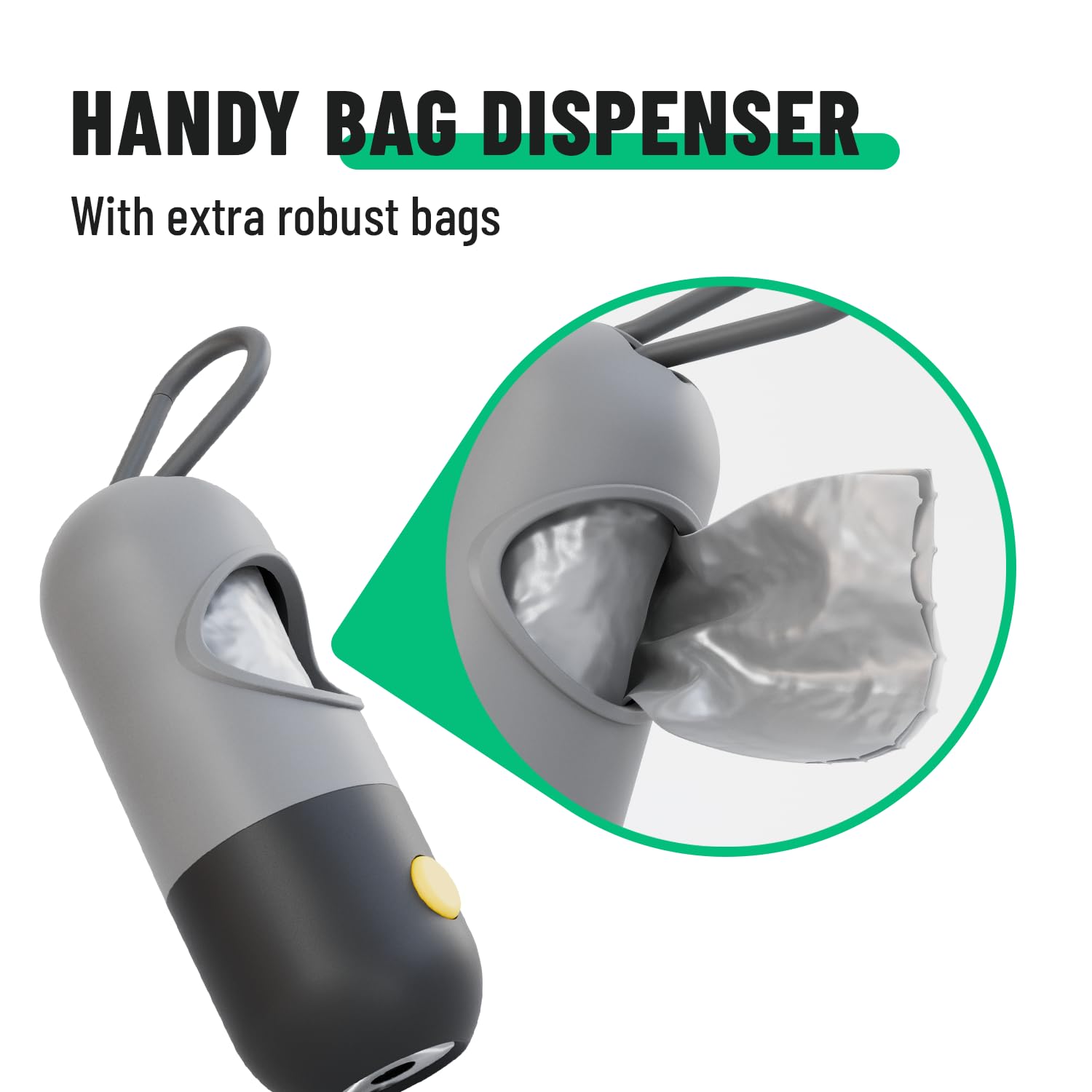 - TORCH – The dog bag dispenser with built-in torch makes it easier to locate and pick up dog waste – ideal poop bag dispenser for walks in the dark