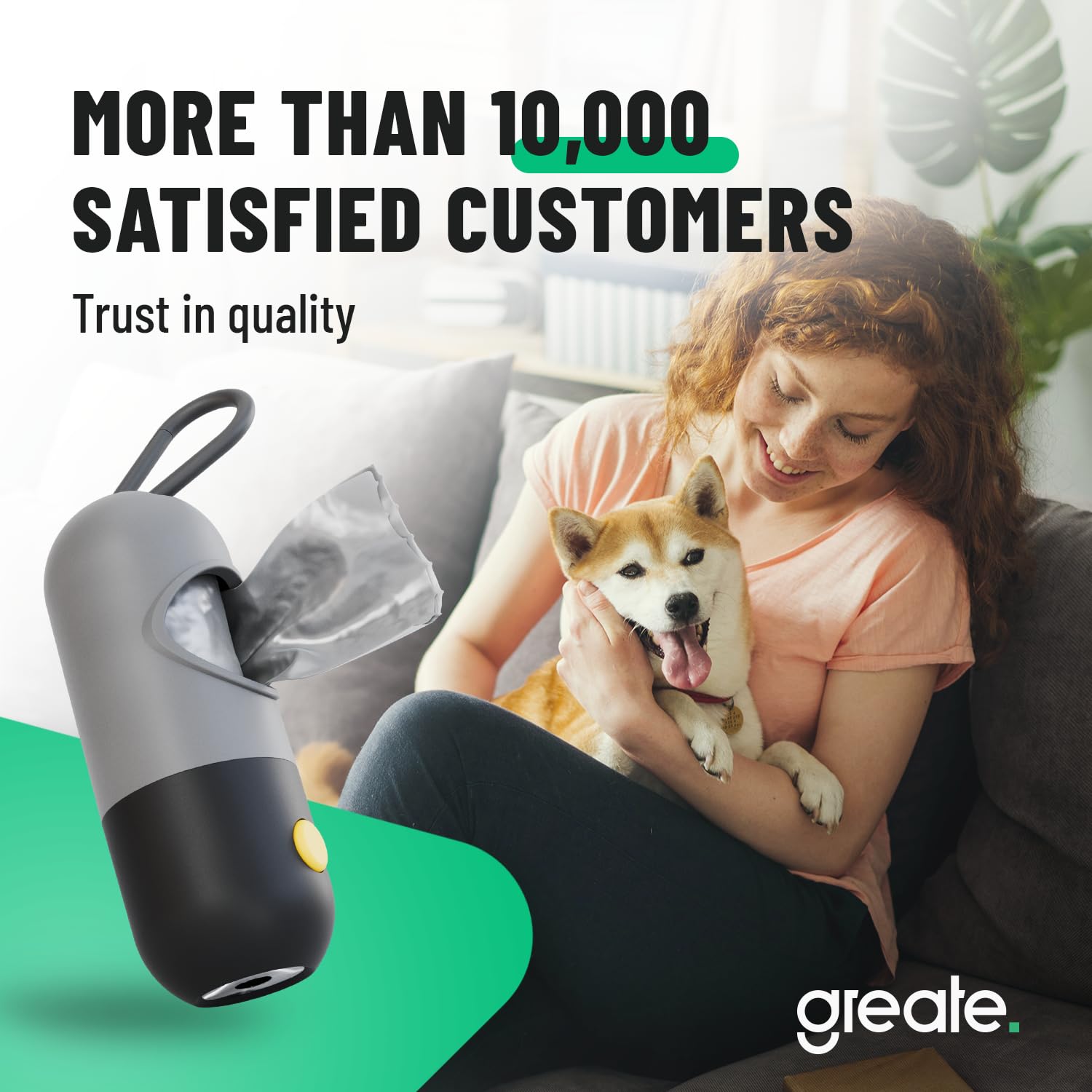greate 2x Dog Waste Bag Dispensers with Torch & Carabiner Clip – Poop Bag Dispenser for Dog Lead – Dog Waste Bag Holder incl. 30 Bags
