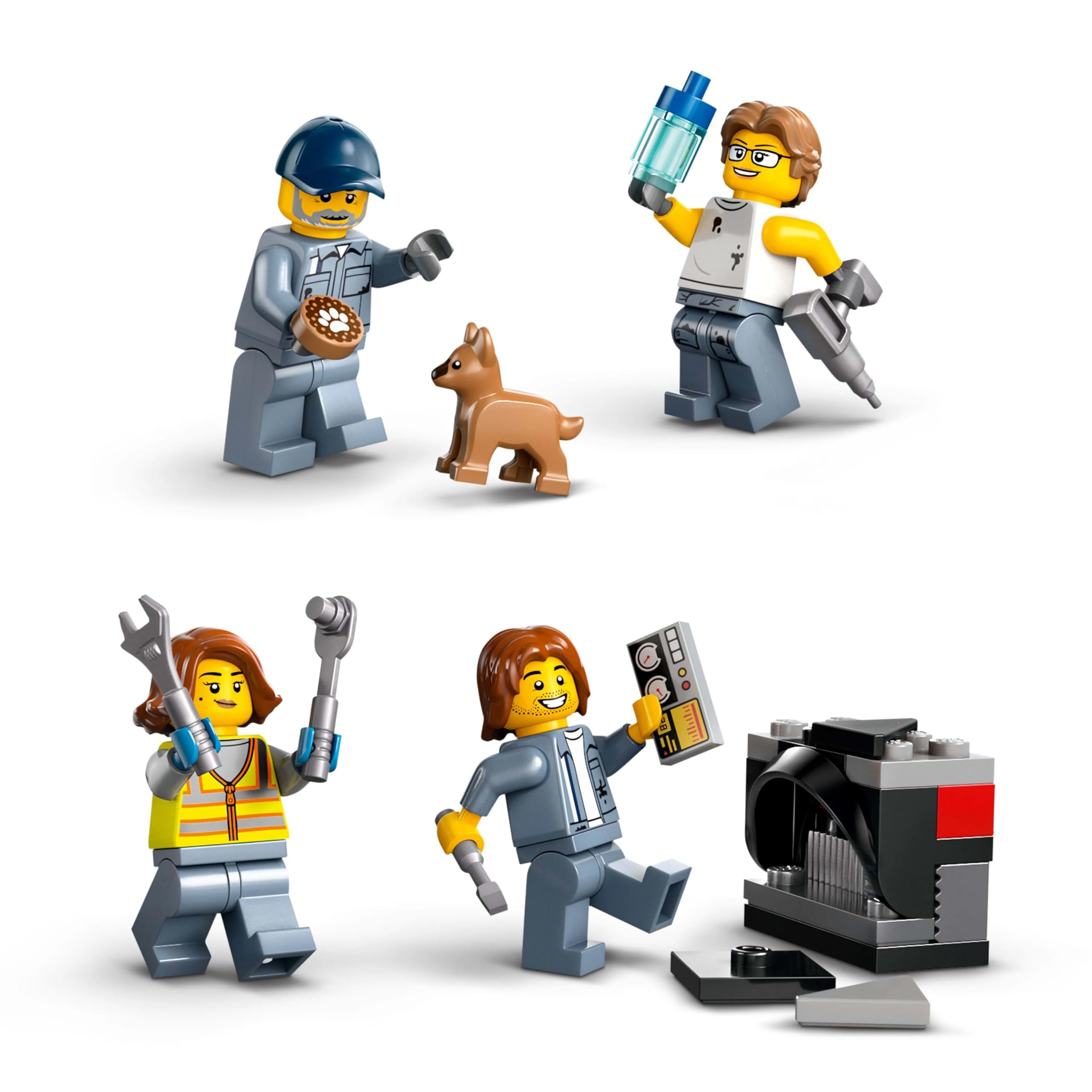 - LEGO City minifigure accessories – This fun playset includes a toy computer and tools including a drill, wrenches and a hammer
