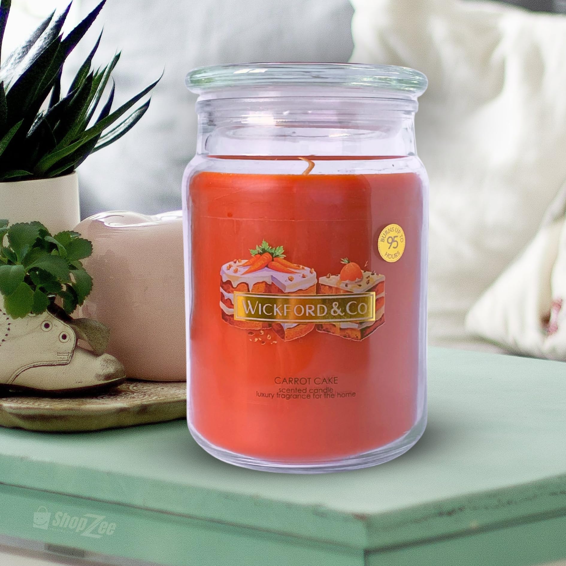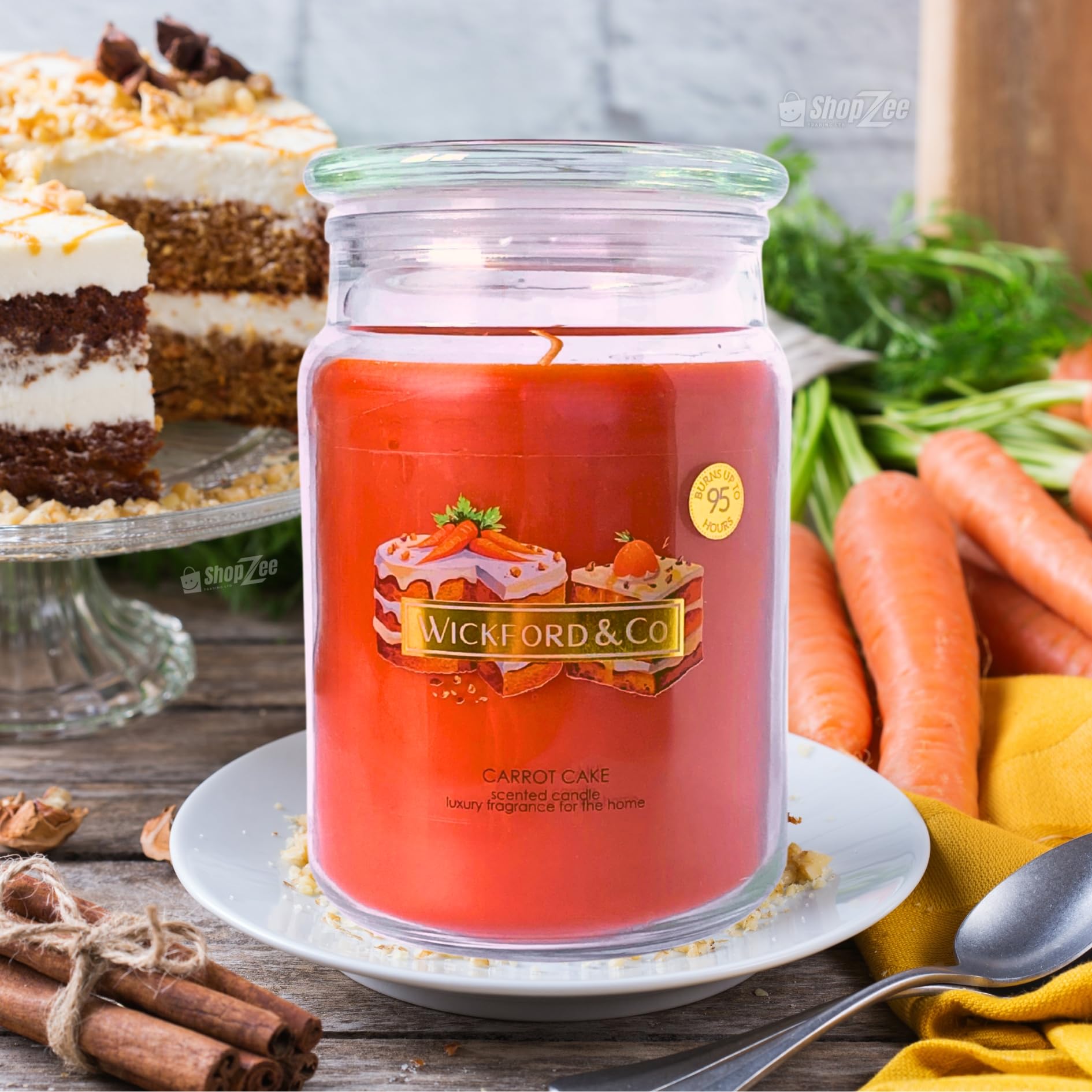 Luxury Scented Large Glass Jar Candle by Wickford & Co – 18oz, 95-Hour Burn Time, Ideal for Any Space & Special Occasions – Includes ShopZee Candle Safety Tips Guide (Carrot Cake)