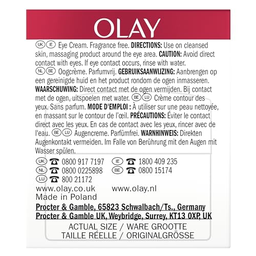 Olay Regenerist Eye Cream, Anti-Wrinkle + Active Firming Skincare Eye Moisturiser with Anti-ageing Niacinamide and Peptides, Renews, Firms and Hydrates, Fragrance Free, 15ml