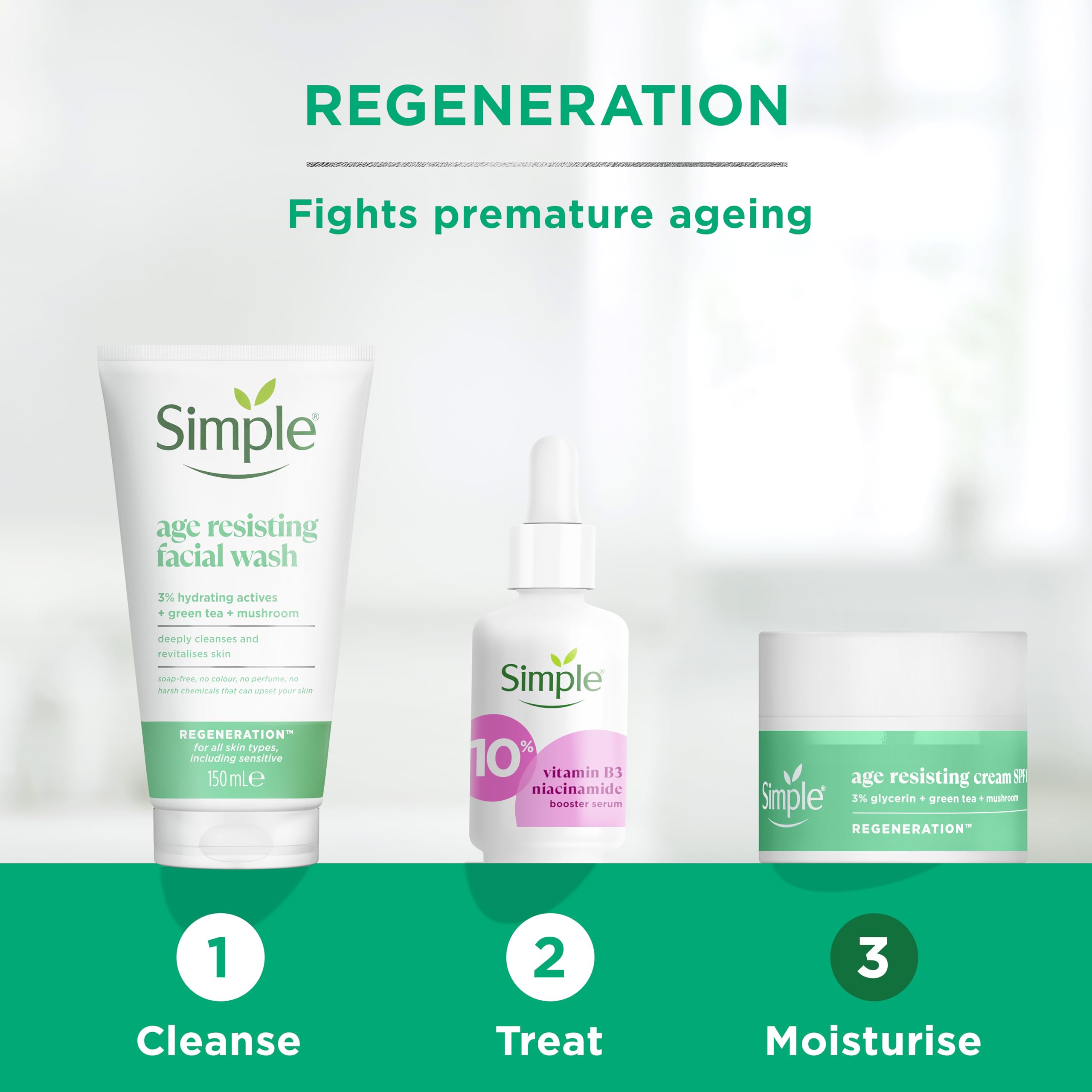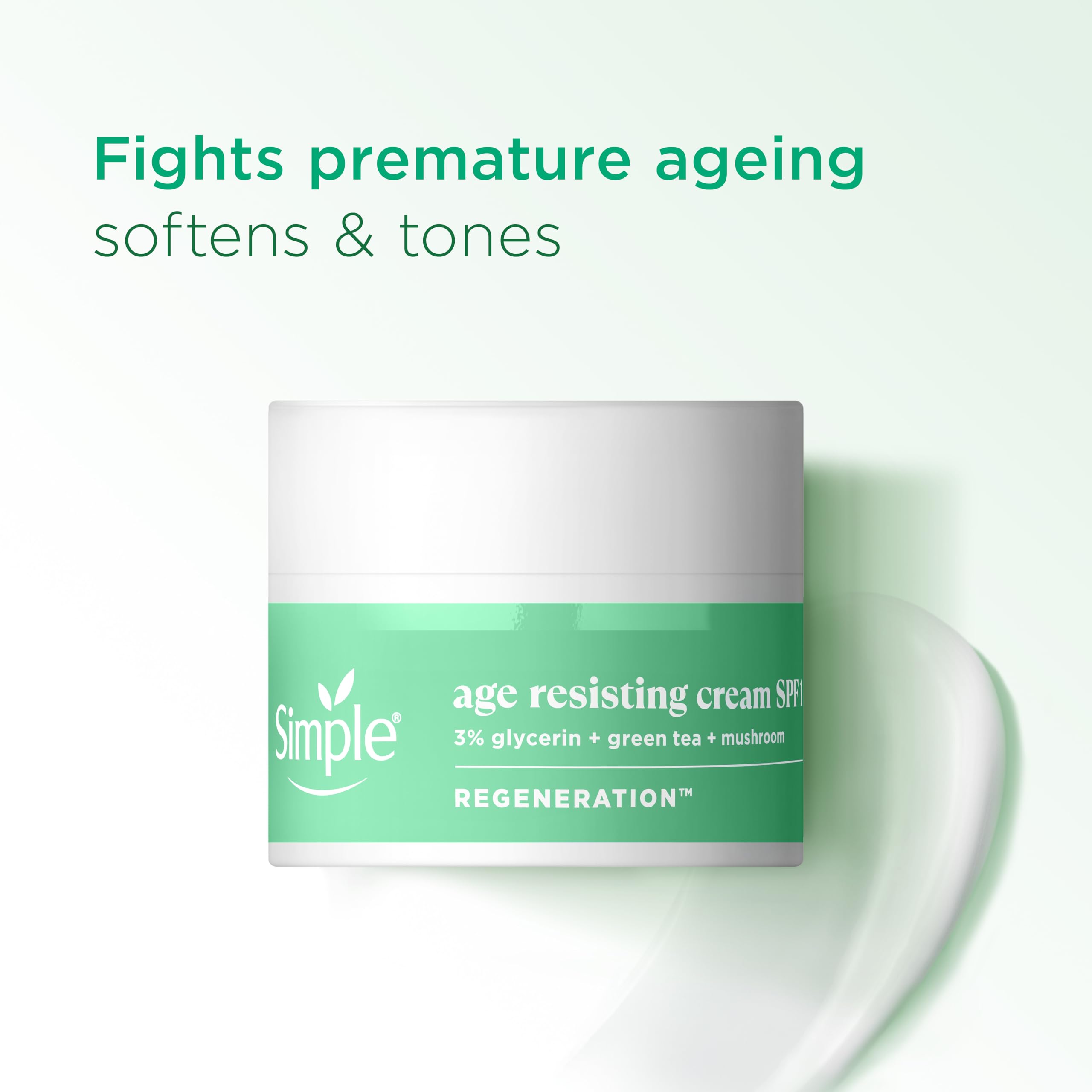 - Simple Regeneration Age Resisting Face Cream SPF 15 nourishes and smooths your skin to help prevent the early signs of ageing