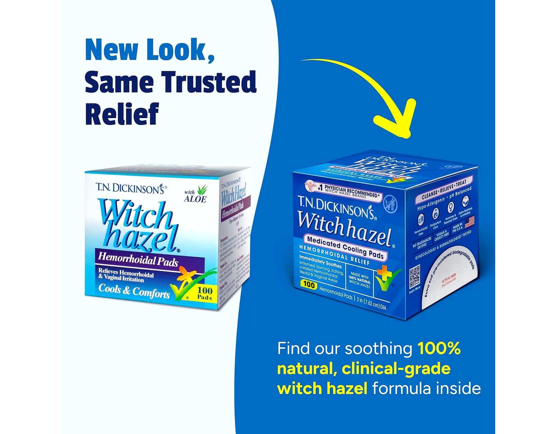 T.N. Dickinsons Hazelets Witch Hazel Pads – 60 Ea