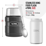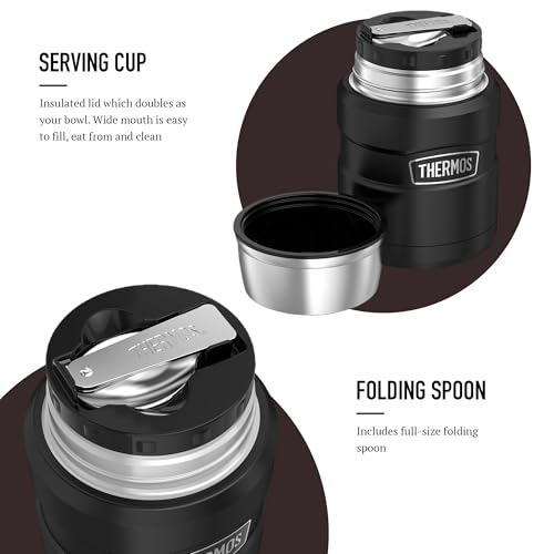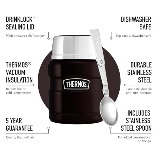 Thermos Stainless King Food Flask, 470ml Capacity – Sleek Multi- Purpose Flask for Daily Food Prep – Durable Stainless Steel with Classic Matt Black Finish – Ideal for On-the-Go Meals & Drinks