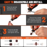 - 【Variable Speed】This 130W variable speed rotary tool can provide no-load speed up to 35000rpm, low speed for cleaning, and high speed for drilling, cutting, and sanding. It provides you with better control and accuracy, allowing you to adjust the speed according to various functions freely.